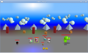 Each frame (drawing cycle), apitrace records all OpenGL calls. In the screenshot above, you see that nearly all frames consist of 757 calls. It makes sense that this number is constant from one frame to the next, because each frame, the game builds up the scene in exactly the same way: draw the background, draw the bunnies, draw the interface buttons. Most OpenGL functions perform communication with the graphics hardware, which is slow, so it's important to keep this number as low as possible. 757 is probably a bit higher than I would like. Allegro adds a few extraneous calls that aren't strictly necessary, but this is part of the trade-off between the ease of use of Allegro and the raw power of OpenGL.